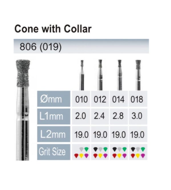מקדחים לרופאי ומרפאות שיניים>מקדחי יהלום לרופאי שיניים ומעבדות שיניים>צורת קונוס עם צוואר>Cone with Collar 806(019-014)